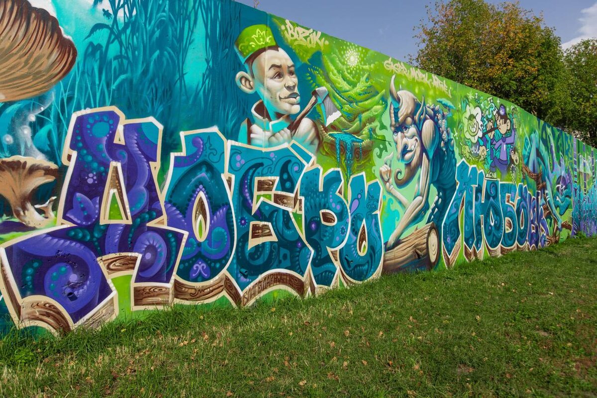 😽Пришло время сказок на ночь на вечер В столице республики появилось граффити с героями сказок Габдуллы Тукая. Его площадь – 250 кв.м. Для его создания художникам понадобилось 50 литров фасадной и около 200 баллонов аэрозольной краски. Как вам?👍 Абау