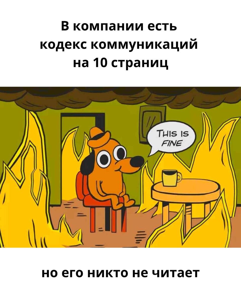 ΡΡΠΎ Π²ΡΠ³Π»ΡΠ΄ΠΈΡ ΡΠ°ΠΊ: ΡΡΠΊΠΎΠ²ΠΎΠ΄ΡΡΠ²ΠΎ ΡΠΎΠ±ΠΈΡΠ°Π΅ΡΡΡ, ΠΏΠΈΡΠ΅Ρ Π΄ΠΎΠΊΡΠΌΠ΅Π½Ρ Π½Π° Π΄Π΅ΡΡΡΡ ΡΡΡΠ°Π½ΠΈΡ Ρ Β«ΠΏΡΠ°Π²ΠΈΠ»Π°ΠΌΠΈ ΠΊΠΎΠΌΠΌΡΠ½ΠΈΠΊΠ°ΡΠΈΠΈΒ» ΠΈ ΡΠ°ΡΡΡΠ»Π°Π΅Ρ ΠΏΠΎ ΠΏΠΎΡΡΠ΅. ΠΡΠ°ΡΠΈΠ²ΡΠΉ ΡΠ°ΠΉΠ» β Π³Π°Π»ΠΎΡΠΊΠ° ΠΏΠΎΡΡΠ°Π²Π»Π΅Π½Π°. ΠΠΎ ΡΠΎΡΡΡΠ΄Π½ΠΈΠΊΠΈ ΠΎΡΠΊΡΡΠ²Π°ΡΡ Π΅Π³ΠΎ ΠΎΠ΄ΠΈΠ½ ΡΠ°Π·, ΠΏΡΠΎΠ»ΠΈΡΡΡΠ²Π°ΡΡ, ΠΈ ΡΠ΅ΡΠ΅Π· Π½Π΅Π΄Π΅Π»Ρ Π²ΡΡ ΠΏΠΎ-ΠΏΡΠ΅ΠΆΠ½Π΅ΠΌΡ: ΠΊΡΠΎ-ΡΠΎ ΠΏΠΈΡΠ΅Ρ Π² ΡΠ°Ρ, ΠΊΡΠΎ-ΡΠΎ Π² ΠΏΠΎΡΡΡ, ΠΊΡΠΎ-ΡΠΎ Π·Π²ΠΎΠ½ΠΈΡ Π²Π΅ΡΠ΅ΡΠΎΠΌ Π² Π΄Π΅Π²ΡΡΡ. ΠΠΎΠ΄Π΅ΠΊΡ ΠΎΡΡΠ°ΡΡΡΡ ΠΌΡΡΡΠ²ΠΎΠΉ Π±ΡΠΌΠ°Π³ΠΎΠΉ. ΠΠΎΡΠ΅ΠΌΡ ΡΠ°ΠΊ ΠΏΡΠΎΠΈΡΡ