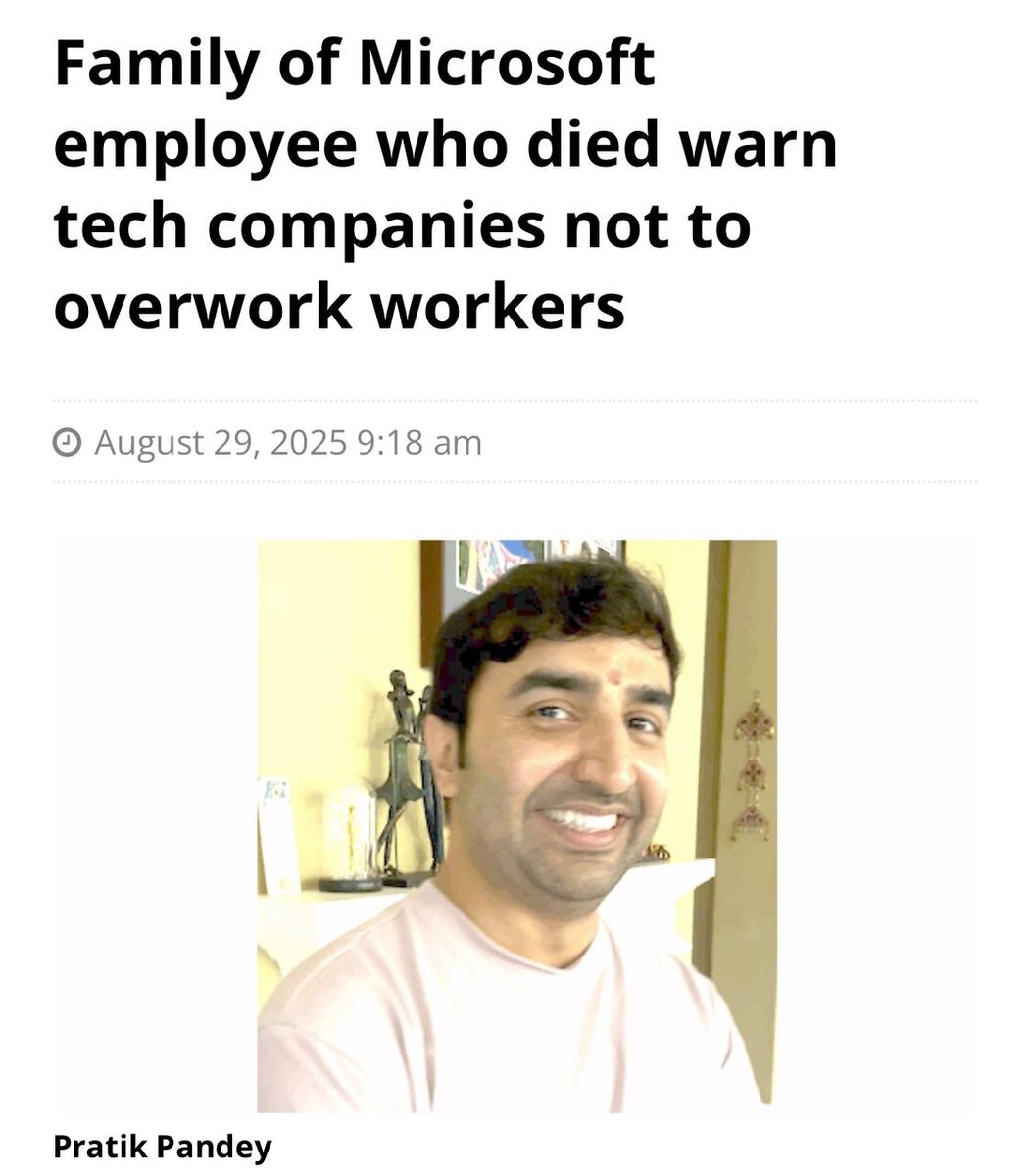 35-летний разработчик из Майкрософта Пратик Панди умер на рабочем месте — предположительно, из-за переработок