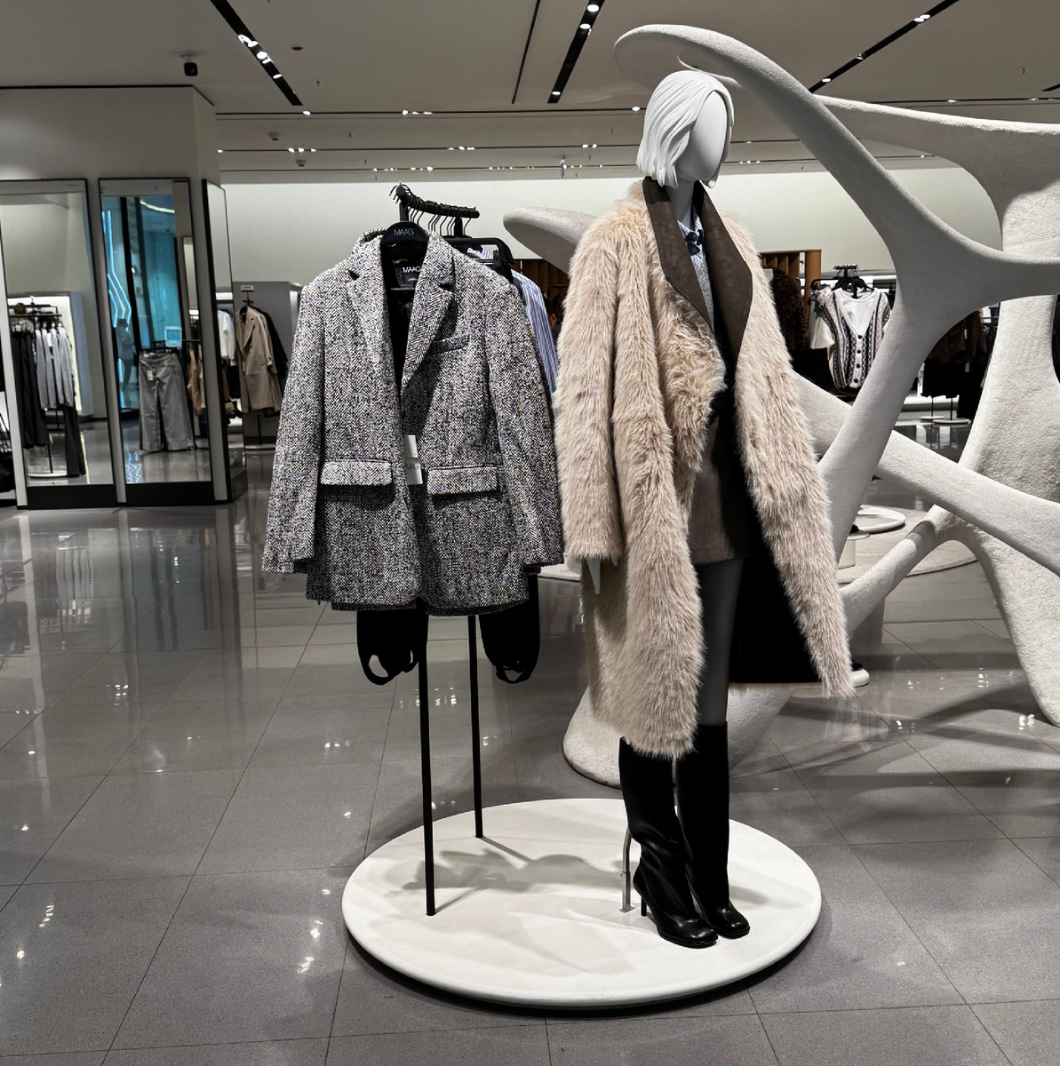 Приветствую Вас, стильные леди! Осень — это не про дожди и слякоть, а про уют, стиль и уверенность в любую погоду. Недавно забегала в MAAG и увидела много новинок, конечно преобладает полиэстер и нейлон в составе большинства моделей, но есть и неплохие смесовые, натуральные ткани и одежда из них. Вот что стоит присмотреть в MAAG, чтобы пережить эту осень с максимальным комфортом и стилем⤵️ ▪️ Костюмная группа и жакеты: Элегантность без ущерба практичности Комплект из жакета и брюк или юбки — тренд, который задает тон всему гардеробу. Это готовая формула на весь день: на работу, встречи, прогулки. Вы выглядите собранно и стильно. Выглядит хорошо и при смесовом составе нет блеска, присущего ненатуральным тканям. 🔗жакет юбки на WB нет пока Как носить? Надевайте костюм целиком для создания цельного сильного образа. Костюмную пару можно легко разделять: жакет — с джинсами, а юбку — с объемным свитером. На что обратить внимание? Выбирайте классические, универсальные цвета MAAG: глубокий си