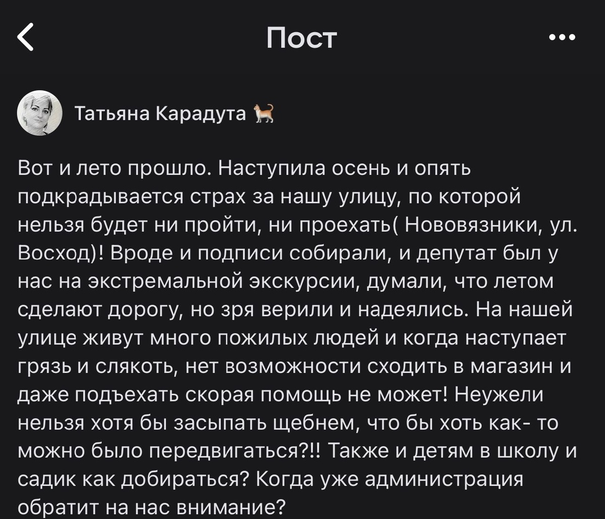 Анон Сделайте дорогу на улице Восход в Нововязниках, скоро дожди будут лить сильные, дорога не сделана. Проголосуй за канал если у тебя подписка Telegram Premium