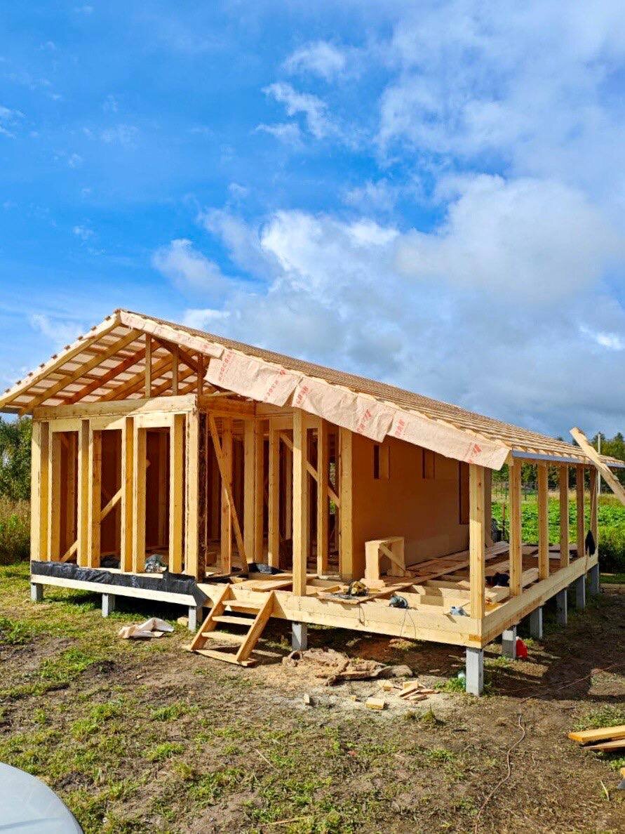 Солнечные фотографии всегда несут тёплые воспоминания ✨ А на объекте в д. Гостилицы, Ломоносовского р-на Ленинградской области собрали каркасную коробку дома размерами 8.5х9 м, с террасой 2.5х9 м. Зашили периметр ветро- и шумозащитными плитами Белтермо, продолжается монтаж стропильной системы. Изучить планировку, мысленно расставить мебель, а так же ознакомиться с вариантами комплектаций можно на нашем сайте, переход в шапке профиля или по ссылке товара 🔗 К-25 С любовью, команда Свой теплый дом✨ Info@teplye-doma.ru 8-800-100-21-75 #СвойТеплыйДом #проектысвойтеплыйдом #каркасныйдом