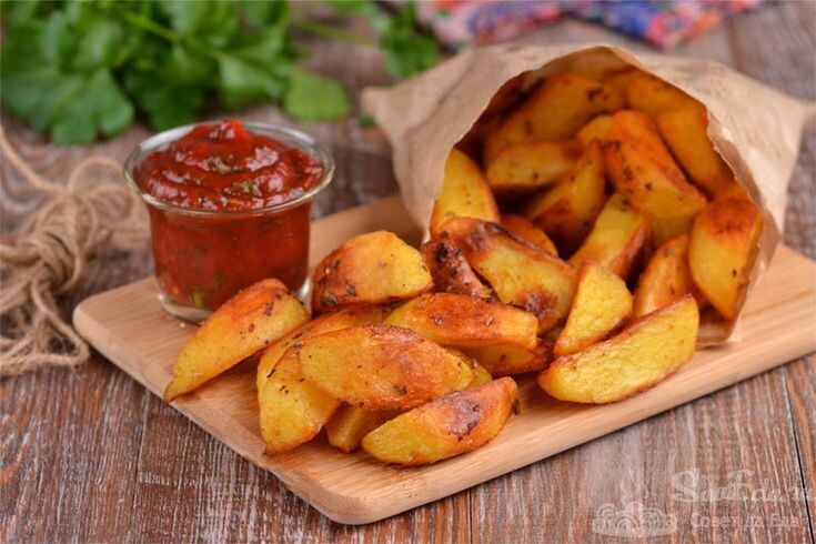 Картошка по-деревенски — это простое, но невероятно вкусное блюдо, которое многие любят больше, чем жареную картошку или пюре. Большие дольки с золотистой корочкой и мягкой серединкой идеально подходят и к мясу, и к рыбе, и как самостоятельный перекус. Название «по-деревенски» появилось не случайно. Раньше в русских деревнях картошку готовили просто: мыли, резали крупными кусками и запекали прямо в печи на чугунных сковородках. Без изысков, без сложных специй — только соль, чеснок, травы и аромат настоящего печного жара. Именно эта простота и дала блюду особый шарм. Сегодня мы можем повторить тот самый вкус у себя дома — в духовке или даже на сковороде. Дополнительно: зелень для подачи (укроп, петрушка), соус (сметанный, чесночный, кетчуп). Картошку тщательно моем щёткой. Чистить не нужно — кожура даёт хруст и «деревенский» вкус. Режем каждую картофелину на 4–6 крупных дольки. Заливаем дольки холодной водой на 20–30 минут. Это уберёт лишний крахмал и сделает картошку более хрустяще