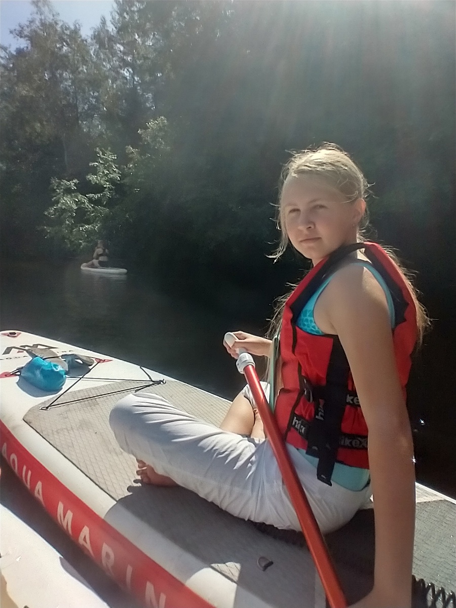 Для первого опыта сплава на сап бордах мы выбрали один из популярных маршрутов по реке Оредеж. Компании предлагают разные по времени прогулки — от трех до шести часов. Мы выбрали короткую со стартом около Сиверской ГЭС и финишем в Белогорке. Перед сплавом инструктор выдал всем герметичные мешки для сменной одежды, прозрачные гермочехлы для телефона, спасательные жилеты (по желанию) и даже по бутылочке воды. После чего провел небольшой инструктаж по управлению сапом и технике безопасности. Нашу группу сопровождали два инструктора, один из которых профессиональный спасатель, успевал следить за всеми, несмотря на то, что за время прогулки расстояние между пловцами растянулось на сотню метров. Второй, с хорошей фотокамерой, делал классные снимки и рассказывал интересные истории. Итак, мы забрались на сапы, пристегнулись к нему специальным тросом, взяли весла и… Оказалось, что река то течет. Меня сначала закрутило в прибрежные джунгли, и пока я оттуда выгребала, вполне освоилась. Управлять