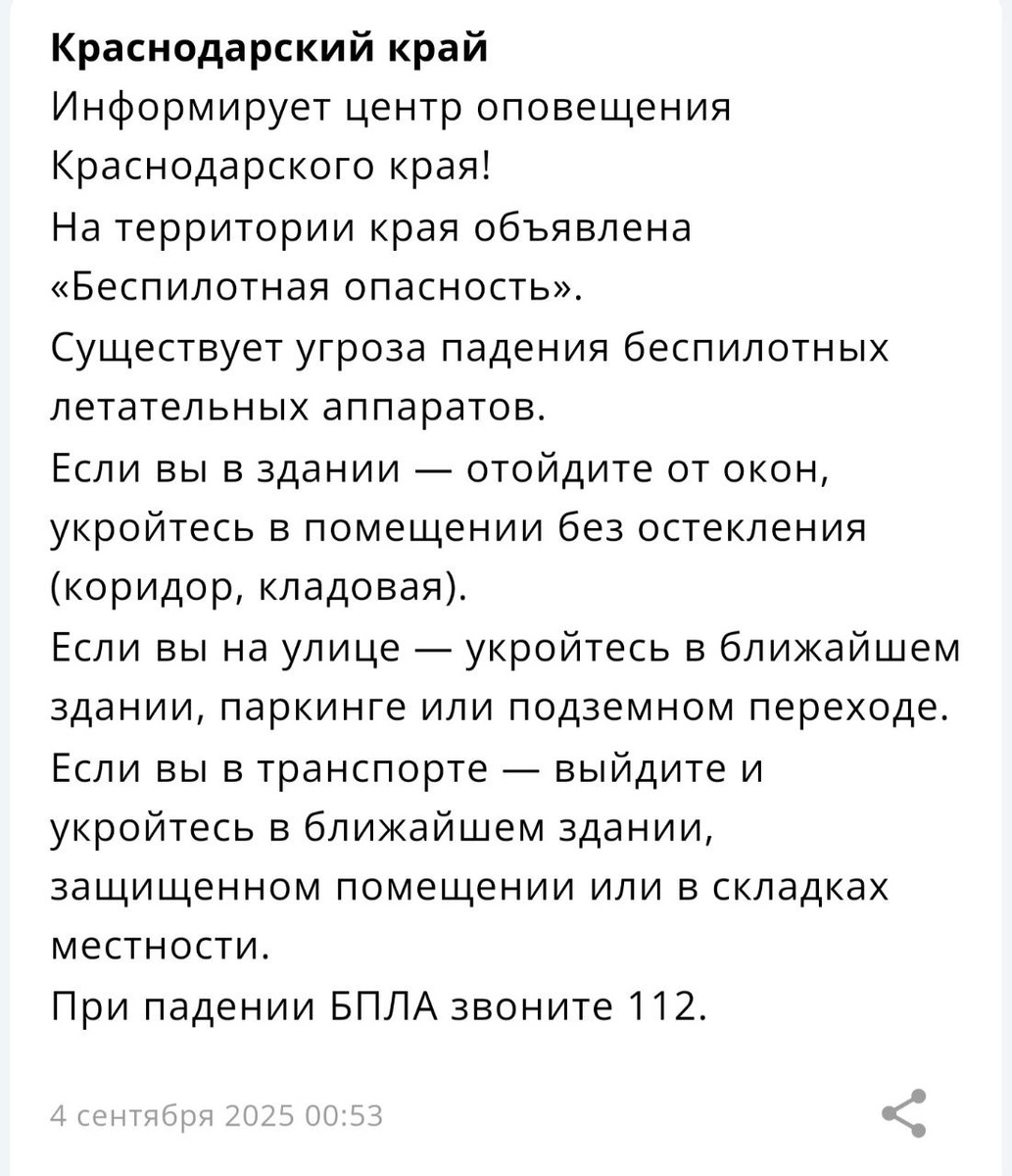 В Краснодарском крае объявлена беспилотная опасность 👍 ТК Краснодар | Подписаться