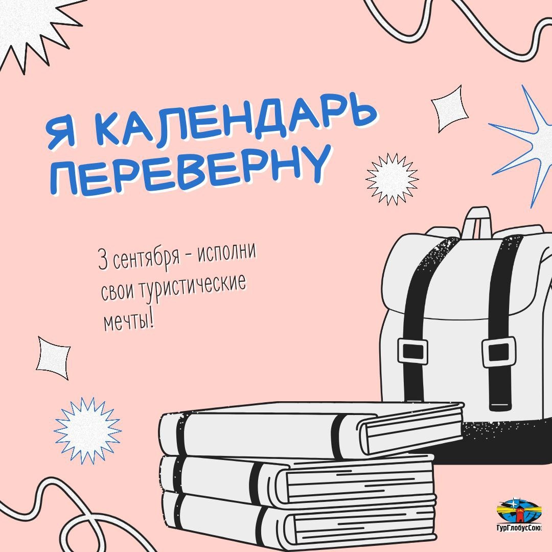 ❗️ 3 сентября! День, когда календарь переворачивают, и… самое время планировать новые путешествия! 🍂 Друзья, помните слова песни: "Я календарь переверну и снова 3 сентября..."? Давайте перевернём календарь вместе и посмотрим, какие приключения нас ждут впереди! 🌏 ➡️Пора! ⭕️ Перевернуть свои представления об отдыхе! Забудьте о банальных направлениях! У нас есть эксклюзивные туры в самые необычные уголки нашей России! ⭕️Перевернуть свой график! Устали от работы? Спланируйте свой отпуск прямо сейчас, чтобы встретить осень и зиму полными сил и впечатлений. ⭕️Перевернуть свою жизнь к лучшему! Путешествия – это лучший способ перезагрузиться, узнать новое и открыть для себя мир во всем его многообразии. 📌Не откладывайте свои мечты на потом! Переверните календарь и начните планировать свой отпуск прямо сейчас!