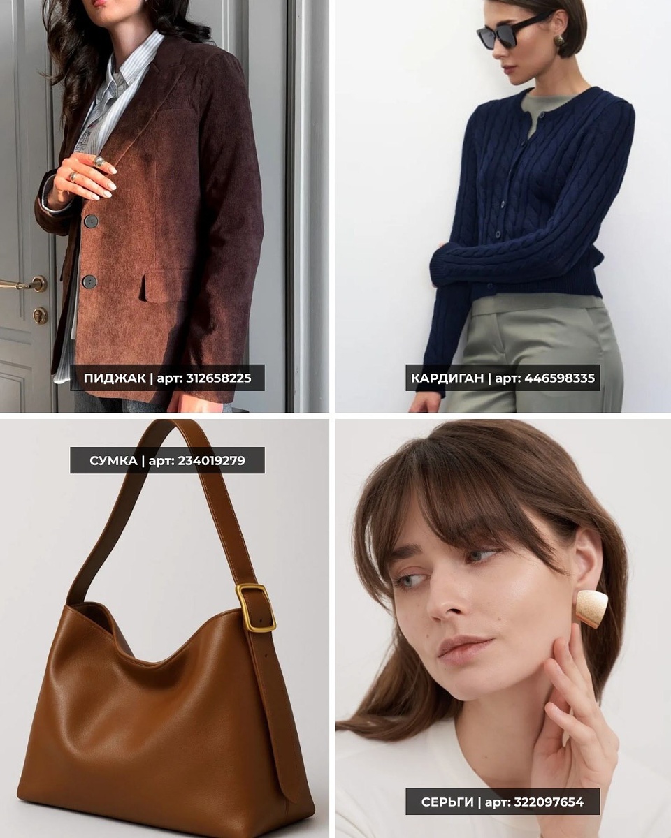 Иногда, чтобы выглядеть «дорого и спокойно», достаточно правильно собрать базу и добавить пару выразительных акцентов. На фото — именно такой универсальный сет, который легко адаптируется под офис, свидание и будни. Ниже разберём каждую вещь строго по артикулам: посадка, ткань, нюансы, с чем носить и совет стилиста для идеальной посадки.