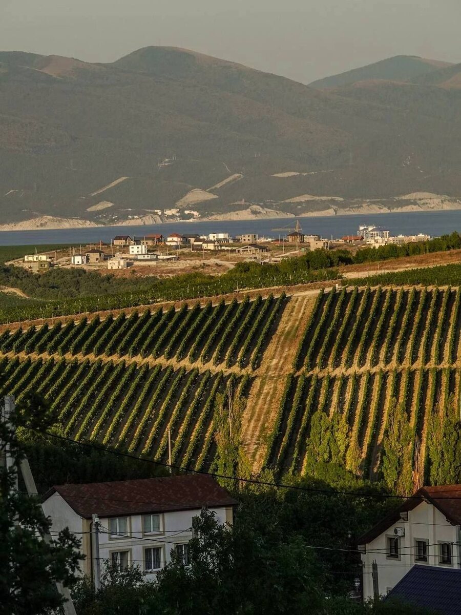 Пейзаж для вдохновения. Виноградники, море, домики и город, подступивший к ним вплотную.