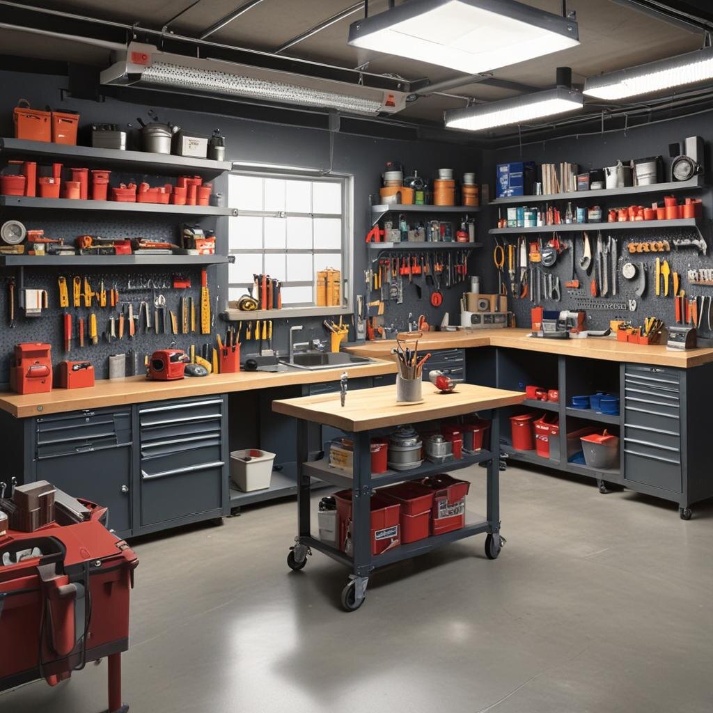 Оптимальное расположение полок и верстака в гараже 🛠️ Правильная планировка гаража превращает его из хаотичного склада в эффективное рабочее пространство. Ключ к успеху — эргономика и логистика. Зонируйте пространство Сначала определите основные зоны: рабочую (верстак), хранения (полки) и парковочную. Это основа грамотной расстановки. Верстак: сердце мастерской Размещайте его так, чтобы подход был минимум с трёх сторон. Идеальное место — центр гаража или у самой широкой стены, но не напротив ворот, чтобы не мешать парковке. ☝️Убедитесь, что зона хорошо освещена. Рядом должны быть розетки для инструмента. Полки: система хранения Используйте принцип «частота использования»: * Часто используемые инструменты и материалы храните на полках в зоне легкой досягаемости — прямо над или рядом с верстаком. 📦 * Сезонные вещи (шинный ключ, антифриз) и тяжёлые предметы (банки с краской, колёса) лучше размещать на нижних ярусах стационарных стеллажей. * Редко используемые items отправляйте