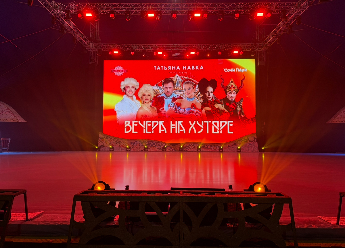 Всем привет! В июле я ходила на ледовое шоу Татьяны Навки «Вечера на хуторе», которое проходило в Сочи. Хочу поделиться своими впечатлениями и опытом. Также предупреждаю, что данная статья не несет в себе цель оскорбить кого-либо, а еще возможны спойлеры! Фото сделанное перед шоу Ледовое шоу проходило в «Сочи Парк Арена». На площадку стали запускать примерно за час до начала, этого времени было достаточно. Я успела купить мерч от команды Навки и спокойно, без какой-либо давки, сесть на свое место. Еще хочу сказать, что при покупке билета в «Сочи парк» вы можете взять купон на представление, он уже включен в стоимость билета. Советую брать купоны утром, так как в прошлом году за пару часов до шоу, билетов уже не было. К слову, я сидела на VIP-секторе в первом ряду, на 26-м месте. Обзор был очень хороший, прямо посередине. Не могу сказать, что свободных мест было мало, потому что когда я заходила на сайт за 10 минут до начала представления, места были. На арене, как я упомянула ранее, бы