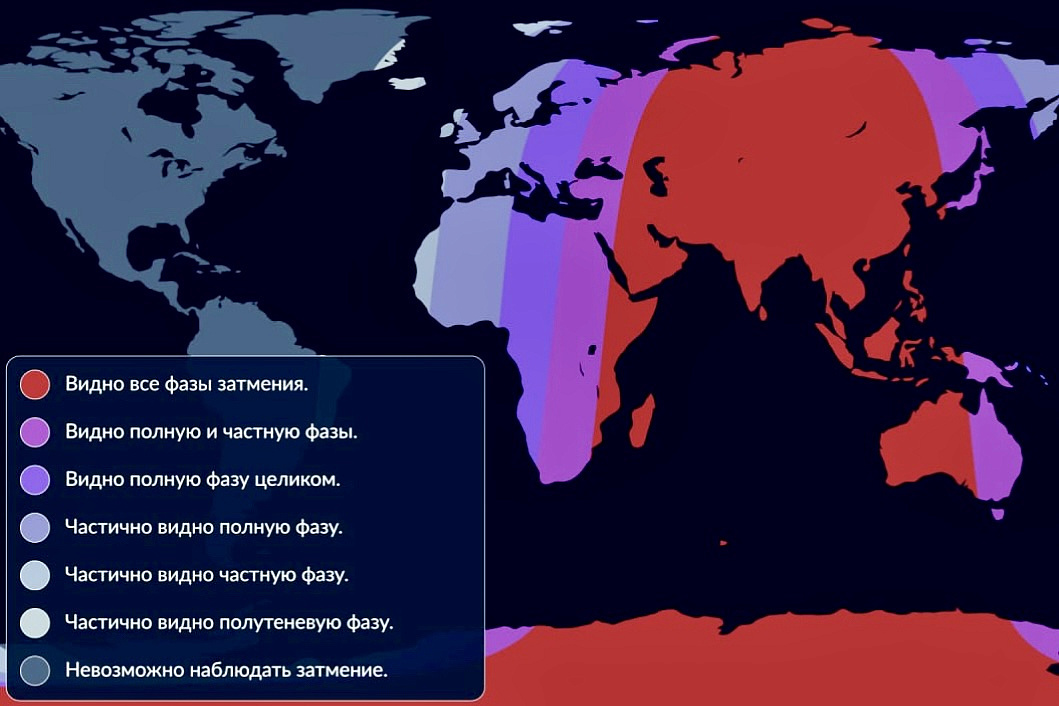 Чтобы не запутаться в часах: глобальные расчёты указывают на начало пенумбральной фазы в 15:28 UTC (18:28 мск), начало частичной —