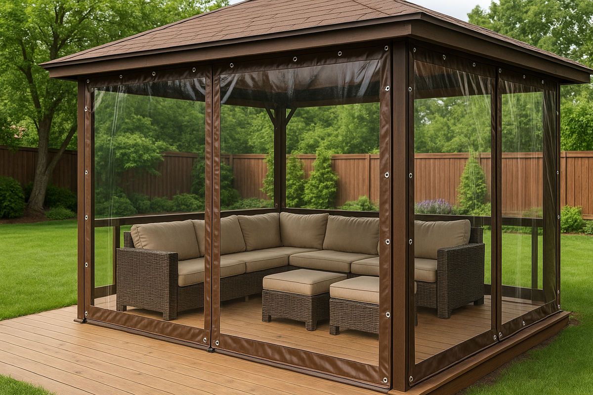 Беседка — это место отдыха на даче или во дворе частного дома. Но любая открытая конструкция сталкивается с проблемами: ветер, дождь, пыль, насекомые. Даже в теплое время года это мешает комфортному отдыху. Поэтому владельцы начинают задумываться о защите и выбирают разные решения: тканевые занавески, жалюзи, рулонные системы. Среди всех вариантов всё больше популярность набирают шторы из прозрачного ПВХ.