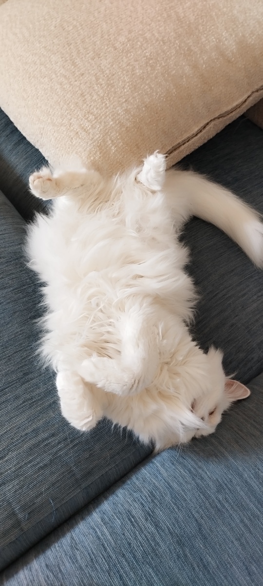В зале лежала кошка Василиска вот в такой манкой позе. Я глазами показала сыну на Васю.
