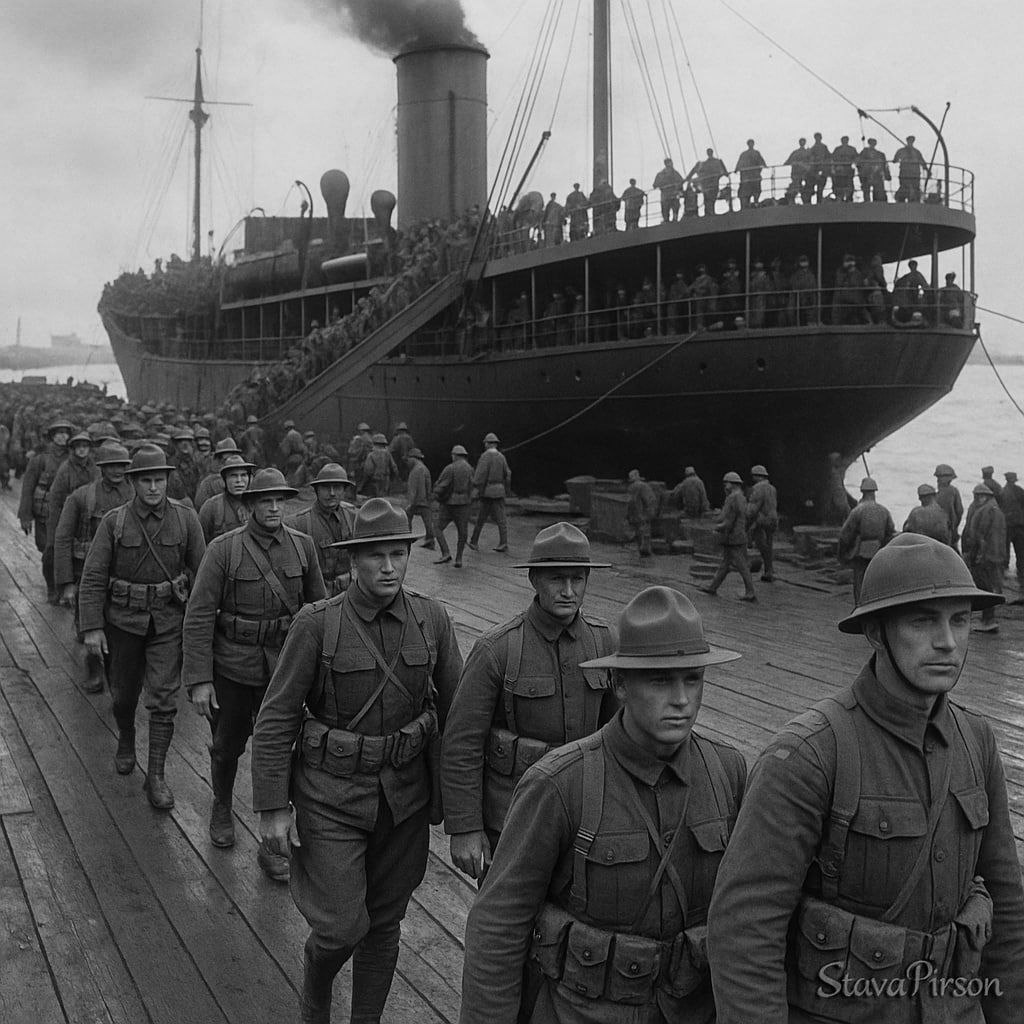 Архангельск, 4 сентября 1918 года. Высадка американских и британских войск в рамках Северной интервенции — попытка Антанты удержать фронт и склады, что втянуло Русский Север в гражданскую войну международного масштаба.