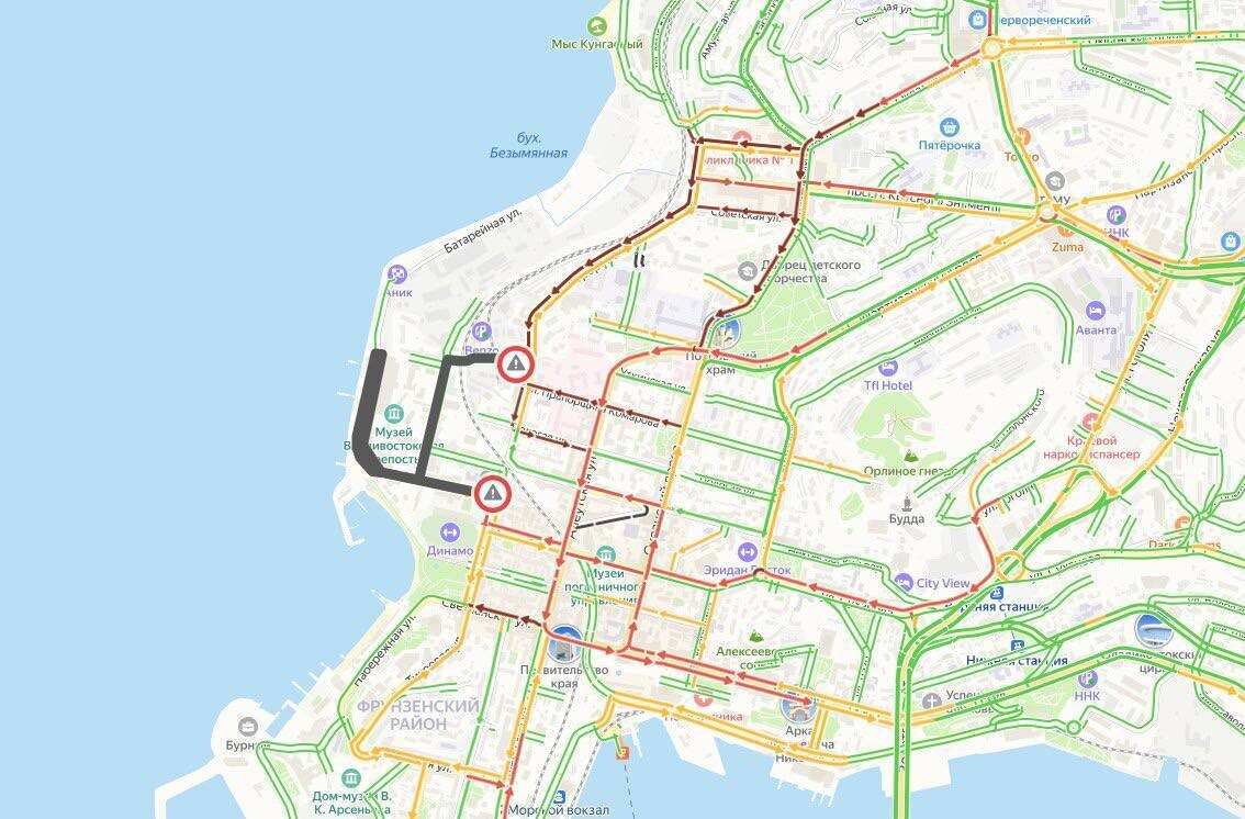 🔴🔴🔴🔴 Водителям Владивостока настоятельно рекомендуют не ехать в центр города!!! ✅Онлайн-информация о ситуации с автодвижением во
