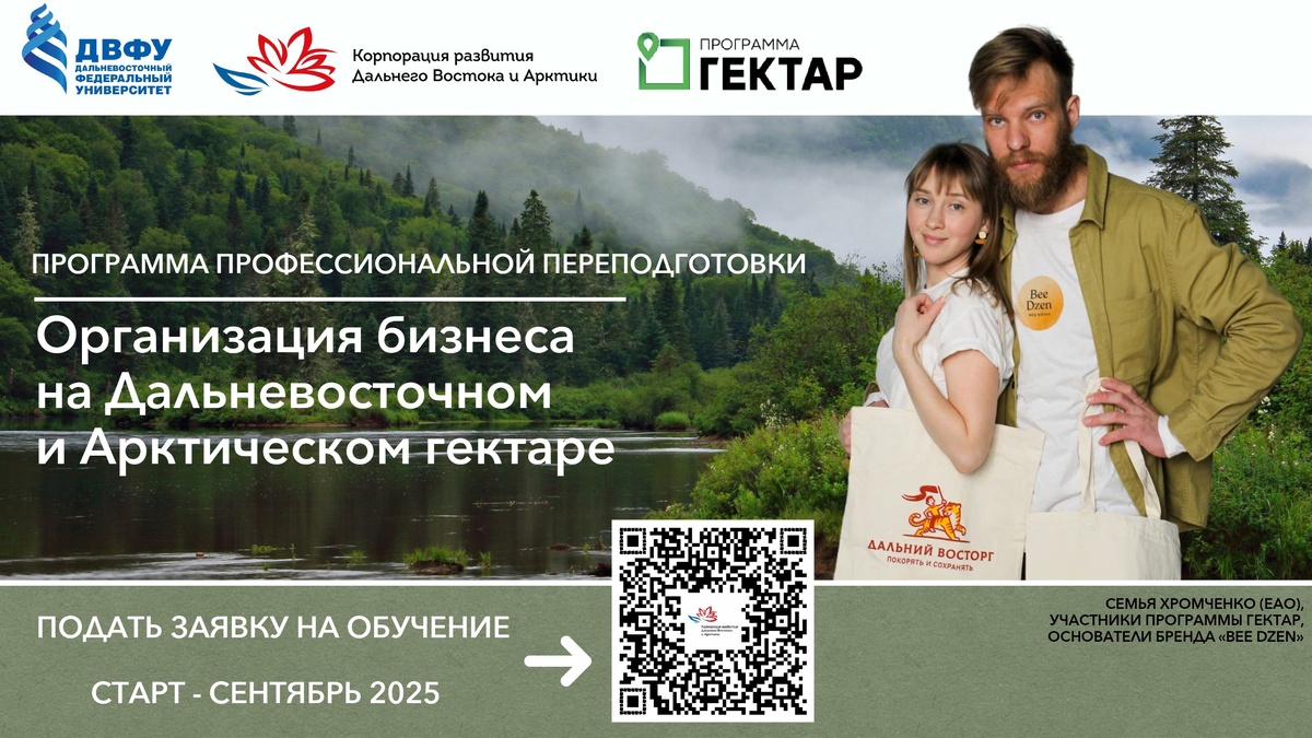 🔺«Корпорация развития Дальнего Востока и Арктики» совместно с «Дальневосточным федеральным университетом» (ДВФУ) сообщает о старте нового набора на бесплатную образовательную программу «Академия для участников программы Гектар». 📑Программа профессиональной переподготовки разработана и направлена на помощь в наращивании компетенций и подготовке поэтапного бизнес-плана для запуска или развития собственного предпринимательского проекта. ☑️Старт нового потока намечен на 19 сентября 2025 года. Обучение займет 250 часов и будет состоять из 8 образовательных блоков, затрагивающих основы предпринимательства, юридические, финансовые и налоговые аспекты ведения бизнеса, маркетинг и продвижение, бизнес-планирование и привлечение финансирования. 👨💻Обучение проводится в дистанционном формате экспертами ДВФУ и отраслевыми специалистами, что позволяет участникам из любого муниципального образования пройти образовательную программу без отрыва от основной деятельности. По итогам обучения каждый