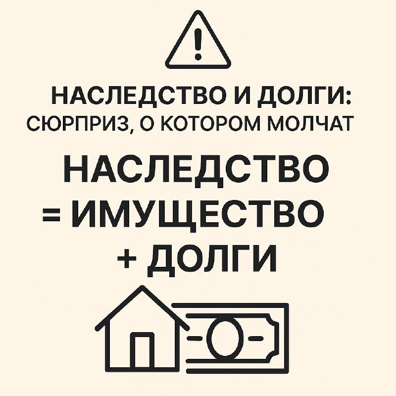 Наследство и долги: сюрприз, о котором молчат📂 Когда мы думаем о наследстве, представляем квартиру, дачу или машину. Но правда в том, что вместе с имуществом часто достаётся и чужой кредитный багаж. По закону всё честно: наследник получает и имущество, и долги. Варианта «беру только квартиру, а кредиты оставьте себе» — не существует. Пример из практики Отец оставил двухкомнатную квартиру. Сын радовался, пока не выяснилось: ▪️900 000 ₽ долгов по кредитам, ▪️долг за коммуналку, ▪️арест от приставов. И теперь сын — наследник не только квартиры, но и долгов. Если вовремя (в течение 6 месяцев) не отказаться — долг становится его обязанностью. Как избежать ловушки: ▪️Проверяйте наличие долгов наследодателя (ФССП, банки, управляющие компании). ▪️Помните: у вас есть 6 месяцев, чтобы отказаться от наследства. ▪️Если долгов больше, чем имущества — отказываться можно и нужно. А если узнал о долгах уже после принятия наследства? Не всё потеряно❗️ Через процедуру банкротства можно списать