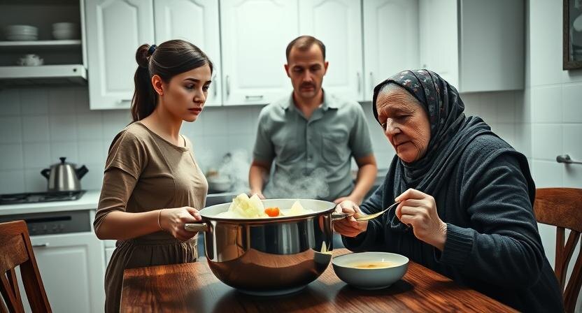 Секунды тянулись вязко, как густой мёд. Анна вдруг почувствовала, что злость больше не кипит — осталась только ледяная решимость. Она взяла кастрюлю со стола и поставила перед Тамарой Ивановной.