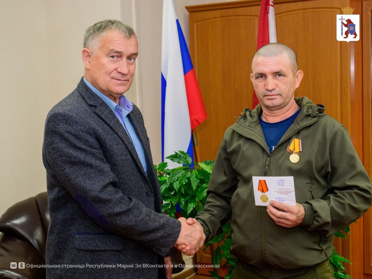 Заместитель Председателя Правительства Марий Эл Степан Воронцов по поручению Главы республики вручил военнослужащему медаль «Участнику специальной военной операции».