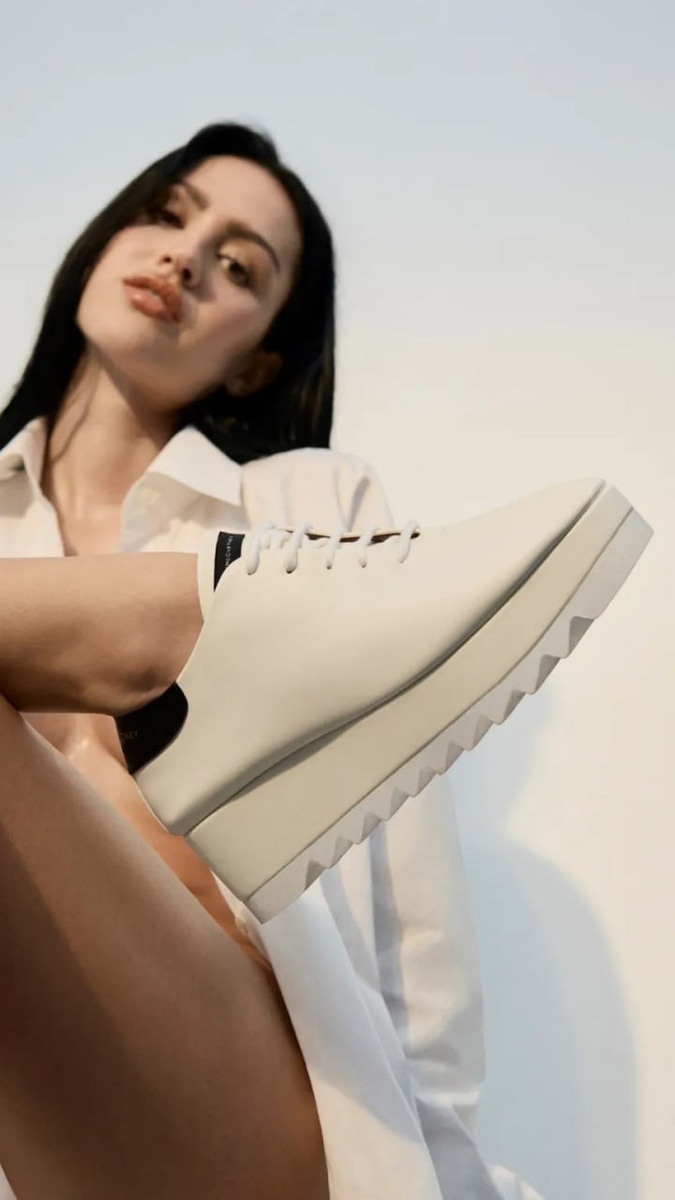 По описанию бренда, Elyse — удобная обувь на платформе, которая визуально добавляет рост и делает образ более выразительным. Яблочную кожу начали разрабатывать в Италии ещё в 2004 году, а мицелий сегодня масштабируют такие гиганты, как Adidas и Kering. Эти технологии десятилетиями шли к рынку и теперь становятся массовым продуктом.