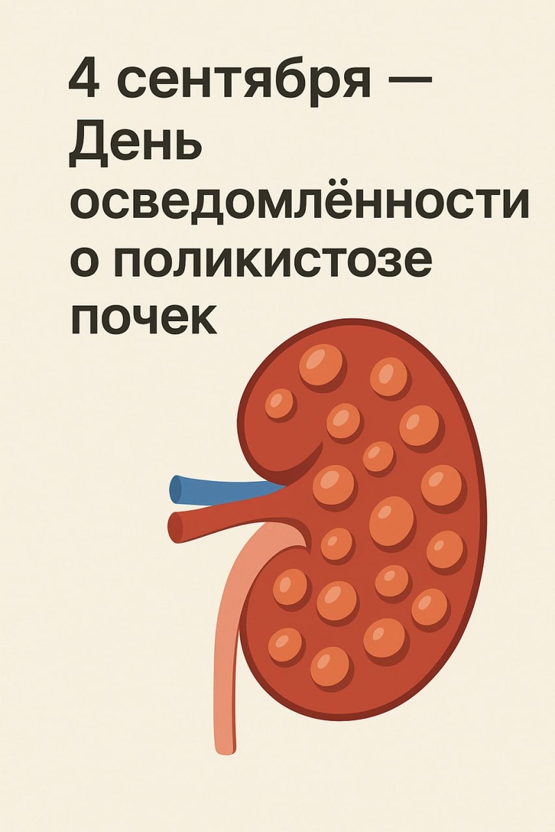 ☀️ Доброго утра! 🧬 4 сентября — День осведомлённости о поликистозе почек Поликистоз почек — это не редкая диковина из учебников, а одно из самых распространённых генетических заболеваний. При нём в почках появляются десятки и сотни кист, заполненных жидкостью. Эти «пузыри» постепенно раздуваются и начинают сдавливать нормальную ткань. Представьте себе губку, которая перестаёт впитывать воду, потому что её поры забиты шариками. Вот так же работают почки при поликистозе. 😮 Болезнь может проявиться в любом возрасте — от внутриутробного до зрелых лет. Чем больше кисты, тем сильнее нарушается фильтрация крови: появляется боль в животе и спине, повышается давление, в моче может быть кровь. В тяжёлых случаях почки просто перестают справляться со своей задачей, и человеку требуется диализ или пересадка. 🔍 Учёные выделяют два типа заболевания. Один — более частый и протекающий относительно мягко, другой — редкий и куда более агрессивный. Но даже при «лёгком» варианте без наблюдения врача