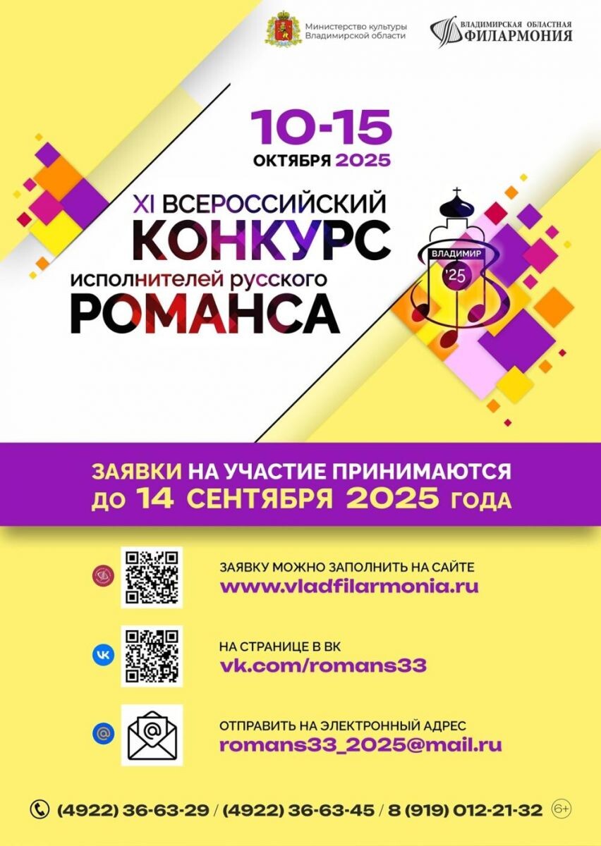 Стать участниками конкурса могут исполнители их России и стран СНГ без ограничений в возрасте. Обязательное требование - иметь профессиональное музобразование или же являться студентом музыкального Заявки на участие принимаются до 14 сентября 2025 года включительно на электронный адрес romans33_2025[собака]mail.ru.