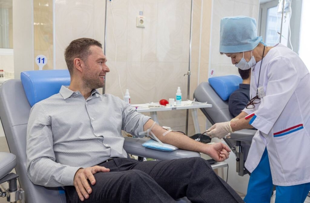 Депутат Вихарев и волонтеры сдали кровь на станции переливания