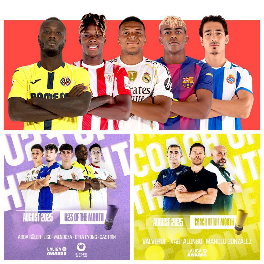 🇫🇷Мбаппе номинирован на звание лучшего игрока ЛаЛиги за август (3 гола за 3 матча)
