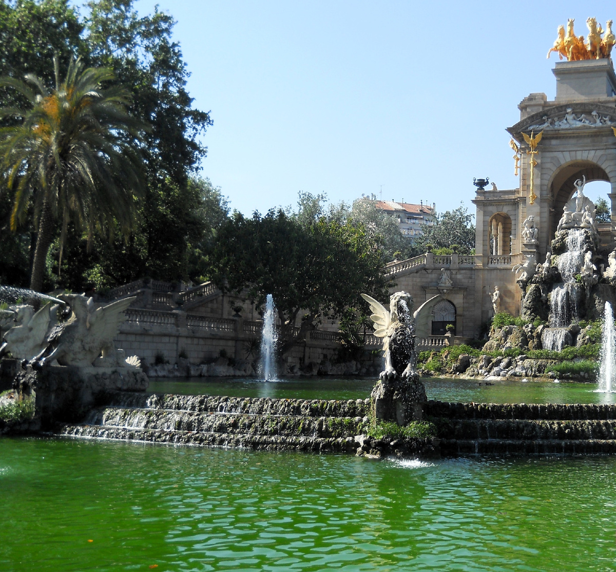 А позже его переделали под Зоопарк, в который мы не ходили. Замок трёх драконов — здание в стиле модерн, служило рестораном во время Всемирной выставки 1888 года. Сегодня здесь располагается Зоологический музей. Триумфальная арка — создана к Всемирной выставке как главное оформление входа на неё, украшена скульптурными композициями и гербами Испании и её провинций. Скульптуры — например, конная статуя генерала Прима, мраморный бюст Марии Агило, статуя мраморной обнажённой женщины Жозепа Лимоны