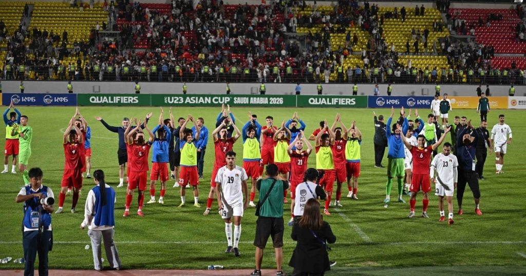 Министрлер кабинетинин төрагасы Адылбек Касымалиев Кыргызстандын жана Палестинанын улуттук курама командаларынын футболдук беттешине катышып, Кыргызстан 2:1 эсебинде жеңишке жетти. ⚽ Кыргызстандын улуттук футбол командасы Палестинанын командасын 2:1 эсебинде утуп, Азия Кубогуна тандоо оюндарында ийгиликке жетишти. 🏟️ Оюн Бишкекте өтүп, көптөгөн күйөрмандарды өзүнө тартты. 👤 Оюнга премьер-министр жана президенттин администрациясынын жетекчиси Адылбек Касымалиев да катышты. 🇰🇬 Бул жеңиш Кыргызстандын улуттук командасынын Азия Кубогуна катышуусуна чоң үмүт берет. 🎉 Кыргызстандын командасы өз күйөрмандарын кубантып, келечектеги оюндарга жакшы дем берүүдө.