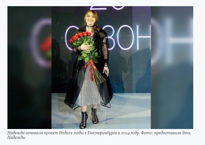 Надежда Матюхина больше 20 лет руководила модельной школой и агентством Екатеринбург-Fashion. Именно она 11 лет назад основала проект Неделя моды в Екатеринбурге, сделав уральскую столицу значимым городом в fashion-индустрии. 30 августа 47-летняя мать пятерых детей скончалась. По словам старшей дочери погибшей 21-летней Марьяны, год назад у ее матери обнаружили рак. Но Надежда не сдалась. Она боролась с болезнью всеми доступными средствами. - Несмотря проблемы со здоровьем мама все так же руководила Неделей моды в Екатеринбурге и заботилась о детях. Незадолго до смерти, она попала в больницу в очень тяжелом состоянии.Но она обещала нам вернуться домой. Самой младшей дочери Надежды всего 6 лет. 1 сентября девочка пошла в первый класс. Мама тщательного готовила ее к этому торжественному событию. Но, к сожалению, на первую школьную линейку прийти не смогла. - Она была прекрасной любящей, понимающей и поддерживающей, делала все для детей. Для меня, как, думаю и для многих, кто знал мою м