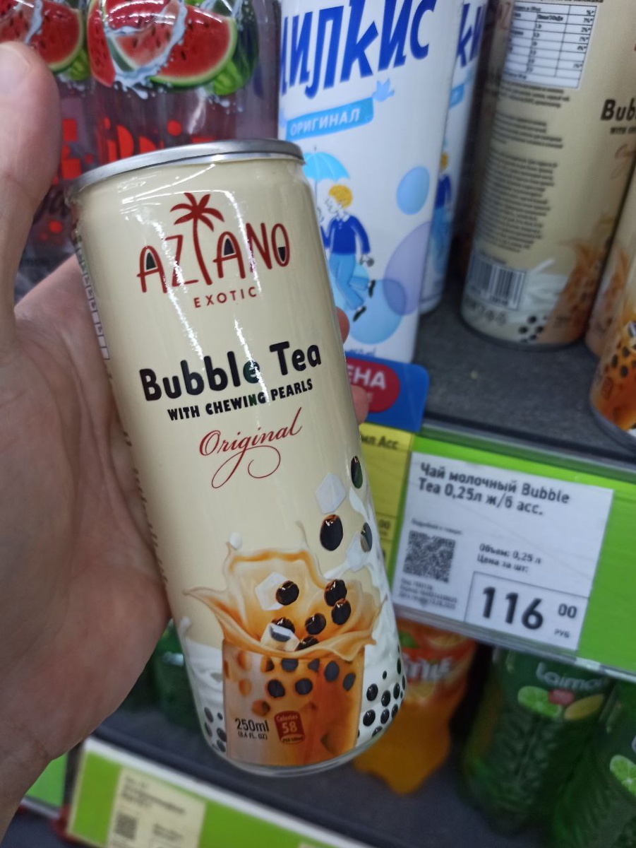 Кто-то в Светофор любит ходить, а кто-то в Ашане закупается. Разные магазины для разных кошельков. Я по прежнему люблю Фикс прайс из-за новинок, которые там появляются чуть ли не каждый день. Обычно я не беру продукты с содержанием сахара, чтобы не навредить фигуре и не стать больше 81 кг. Но в этот раз мне очень понравился один напиток. Молочный чай. А он еще с жевательными шариками. Для молодежи зайдет 100%. Для людей старшего возраста навряд ли. Написано, что шарики из конжака. Такие шарики делают на основе волокон растения конжак. Кстати, первый раз о таком растении слышу. Шарики низкокалорийные, легкоусвояемая клетчатка. В составе сухое молоко, раст. сливки, шарики, вода, сахар, черный чай и др. Новинка из Азии. Фруктовый напиток за 199 руб. Стаканчик 400 мл. удобно взять с собой. В составе чай, сок, фруктозный сироп, ароматизаторы конечно и пр. Сокосодержащий напиток "Май Тай". А в составе вроде ничего плохого нет: сок ананасовый, вишневый и апельсиновый, пюре лайма, сахар,