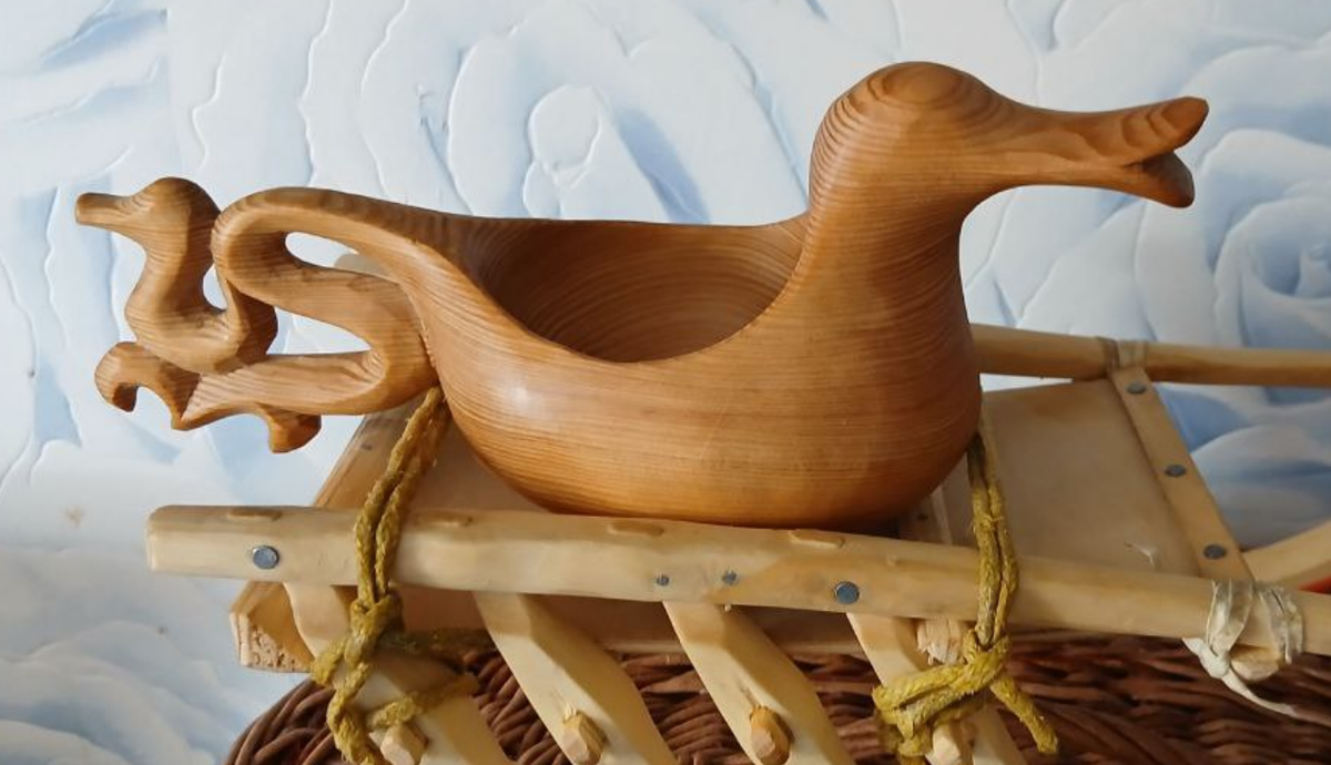 Коми, народ, чьи земли раскинулись среди бескрайних лесов Русского Севера, исторически тесно связан с деревообрабатывающим ремеслом. Обитая в окружении богатых лесных ресурсов, коми обладали развитым искусством работы с деревом, которое, преимущественно, осваивали мужчины. Жизнь коми проходила в деревянном окружении: дома, хозяйственные постройки, мебель, кухонная утварь и предметы быта – всё изготавливалось из дерева. Мастерство передавалось из поколения в поколение, таких умельцев можно встретить и сегодня. Особое место в этом ремесле занимало изготовление разнообразной деревянной посуды. Мастера виртуозно владели техниками выдалбливания утвари из цельных деревянных заготовок, а также сборки изделий методом клепки. И по сей день в старинных коми избах хранятся впечатляющие деревянные чаши, выполненные в форме лебедя или утки. Также распространены были ковши, искусно вырезанные из древесного нароста (капа) и украшенные в виде птичьей головы и хвоста. До недавнего прошлого ни один дом