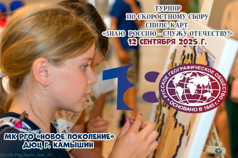 12 сентября в Детско-юношеском центре состоится городской турнир по скоростному сбору спилс-карт «Знаю Россию — служу Отечеству!», приуроченный ко Дню географа и 180-летию Русского географического общества. В просветительском мероприятии примут участие школьники города Камышина и Камышинского района. Они проверят, на сколько хорошо знают административное устройство Российской Федерации и Волгоградской области! Организаторами турнира выступили: Русское географическое общество, комитет по образованию городской администрации, ДЮЦ и молодёжный клуб РГО «Новое поколение». Предварительно, с 8 по 10 сентября, состоятся тренировочные соревнования.