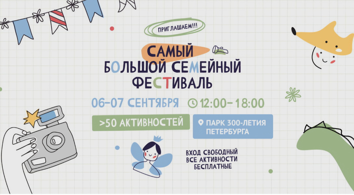 Друзья, приглашаем вас на семейный фестиваль. Наш приют принимает участие! Приходите «Можно всё» — на Самом Большом семейном фестивале юных гостей ждёт океан бесплатных активностей! В зоне «Все возможности детям» участники изготовят слайм, узнают секрет «вулканчиков» для ванны, найдут древние артефакты на археологических раскопках и соберут настоящего робота. Для ребят постарше будет работать площадка молодёжного центра «КОНТАКТ», где участники сыграют в викторину, онлайн-квест, получат подарочные сувениры и узнают, как реализовать свой проект. За несколько минут каждый желающий научится управлять дроном и отправит в полёт настоящий квадрокоптер, а тонкие натуры напишут шедевр в локации с мольбертами. Праздник пройдёт под бит популярных хитов, ведь для юных гостей развернётся танцевальная площадка на свежем воздухе. А отдохнуть с совсем маленькими петербуржцами родители смогут в комнате матери и ребёнка. Самый Большой семейный фестиваль — это более 50 активностей и 9 масштабных з