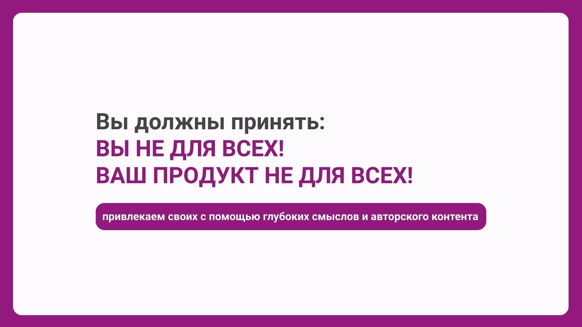 Первое, что вы должны принять: вы не для всех. Ваш продукт, какой бы он не был идеальным, базовым и тд, не для всех. Как тогда быть: