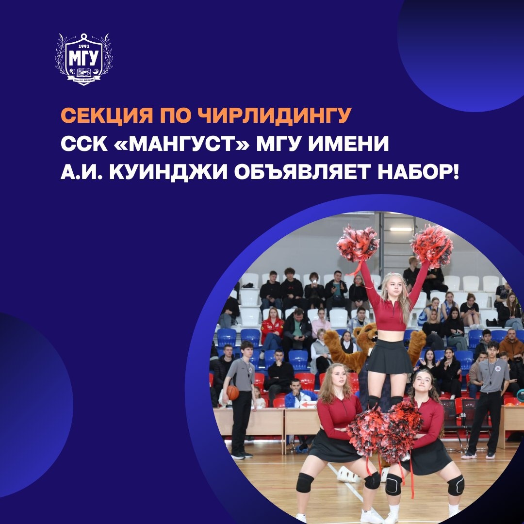 🤩 Секция по чирлидингу ССК «МанГУст» МГУ имени А.И. Куинджи объявляет набор!