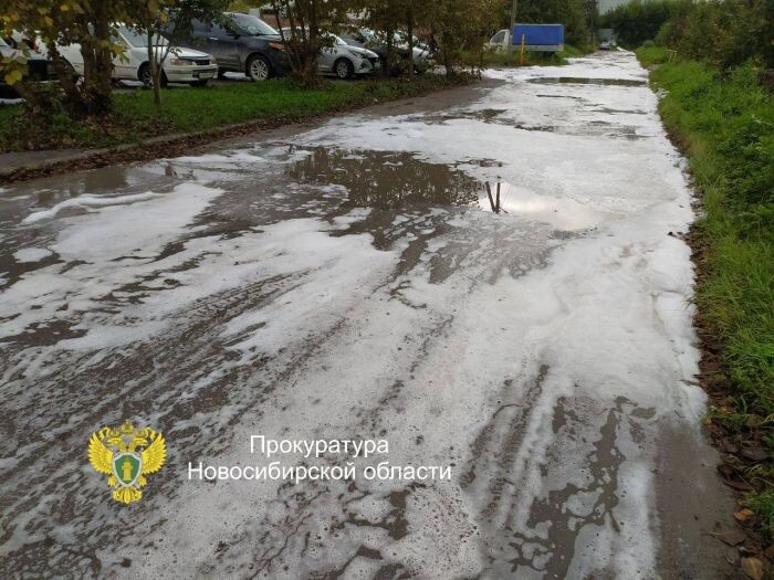Бытовая химия разлилась по дороге на станции Монолитной в городе Искитиме Новосибирской области в четверг.