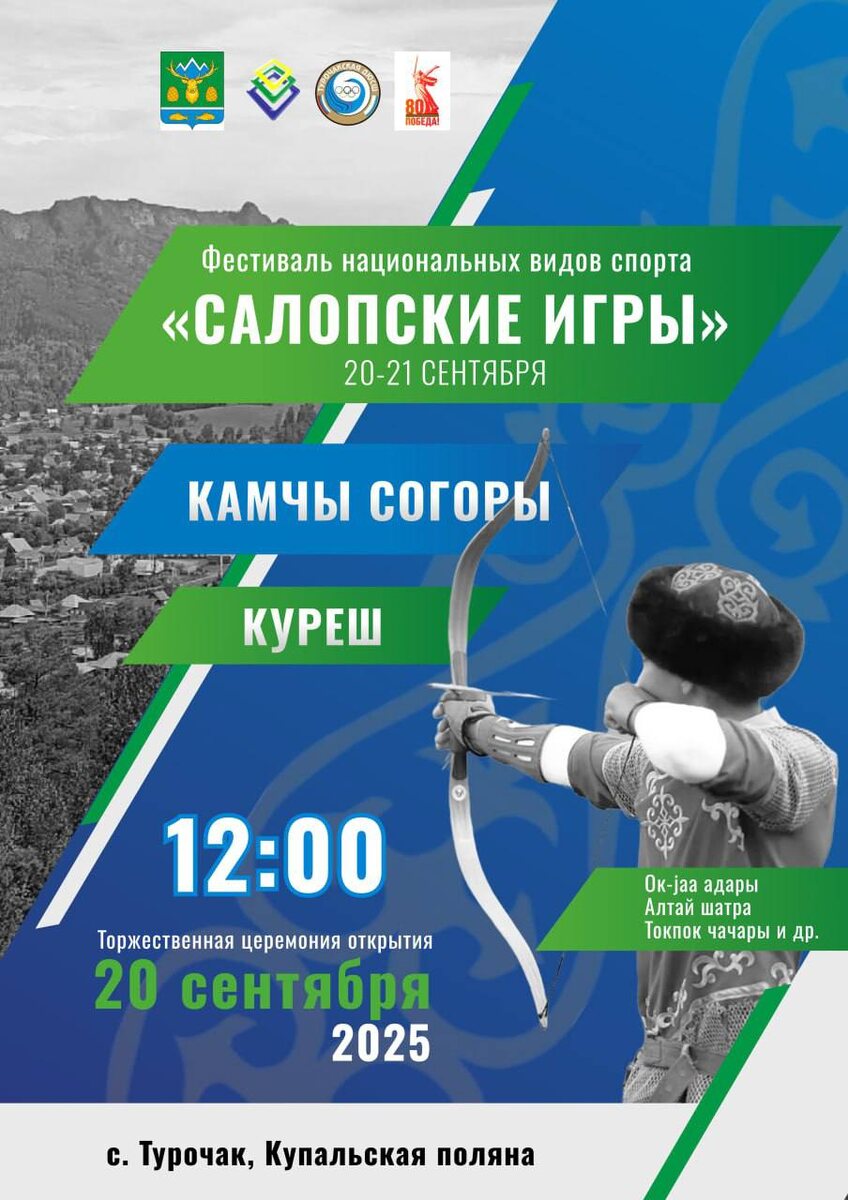 Фестиваль национальных видов спорта «Салопские игры» близится! Ждём всех, кто готов погрузиться в эпицентр энергии и традиций: 📅 Дата: 20-21 сентября 🕙 Торжественная церемония открытия 20 сентября в 12:00 📍 Место: село Турочак, Купальская Поляна В программе: ⚔️ Борьба «Куреш» – схватка, где проверяется сила и ловкость. 🎯 Стрельба из традиционного лука «Ок-jаа адары» – меткость важна как никогда. 💪 Поднятие камня «Кодурге таш» – испытание для самых сильных духом и телом 💪Камчы согоры и другие виды 🔥Яркая церемония открытия с обрядами, музыкой и зажжением огня Игр! 🎨 Ярмарка местных мастеров, фотозоны.