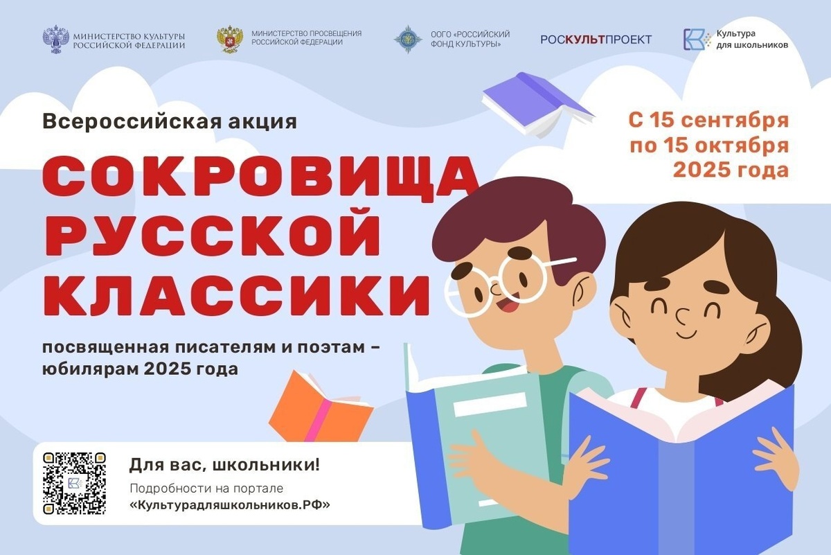 ✍🏻Школьников Ульяновской области приглашают присоединиться к Всероссийской акции «Сокровища русской классики» Она стартует 15 сентября в рамках межведомственного проекта «Культура для школьников» и будет посвящена писателям и поэтам, чьи юбилеи отмечаются в этом году. Школьники смогут ближе познакомиться с творческим наследием наших литераторов, узнать малоизвестные факты их биографии, заново прочесть их стихи, романы, рассказы, письма и дневники, а главное – попробовать создать свои собственные произведения. ✨Чтобы принять участие, необходимо подготовить работу в одной или нескольких из предложенных номинаций и оставить свою заявку на участие в личном кабинете на портале «Культурадляшкольников.РФ». Работы принимаются до 15 октября.