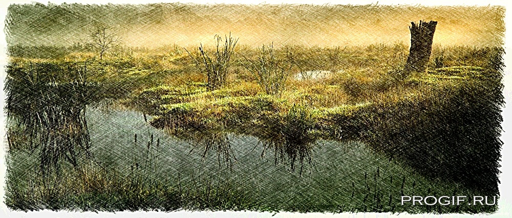И вдруг деревья расступились. Пётр остановился на краю обширного, открытого пространства. Перед ним расстилалось болото. Не то чтобы огромное, но явно незнакомое. Вода, покрытая ряской и пожухлой осокой, поблёскивала в косых лучах заходящего солнца. Воздух над ним струился холодным маревом. А на самом краю, у кромки топи, стояла избушка.