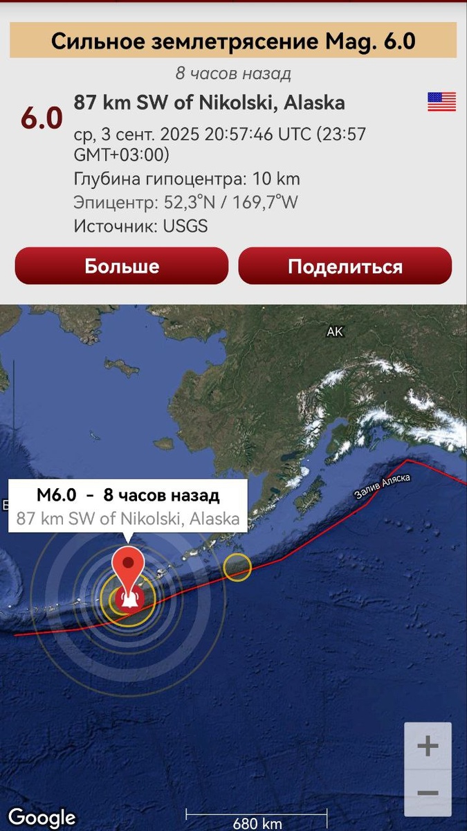 Реализовался прогноз от 27 августа по Аляске в районе Уналашки на М6