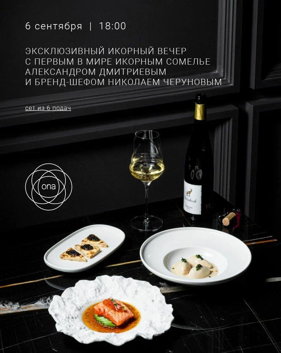Первый икорный званый ужин в ONA 6 сентября в пространстве ONA состоится первое событие - званый ужин, посвященный икре и искусству ее подачи. Ведущий вечера - управляющий ресторана и первый в мире икорный сомелье Александр Дмитриев. Александр - профессионал с 19-летним опытом в индустрии HoReCa, 12 лет из которых он посвятил развитию гастрономической культуры и искусству сочетаний. Для гостей будут подготовлены сет из 6 изысканных подач от бренд-шефа Николая Черунова, увлекательная лекция Александра Дмитриева об икре и ее особенностях, а также шоу-программа. 6 сентября | 18:00 | Cabinet лаунж Ресторан Ona Резерв: https://onarestaurant.restoplace.ws