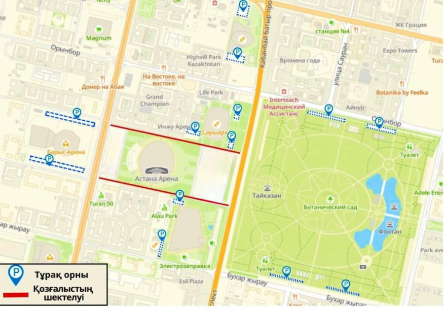 4 сентября в 19.00 на стадионе «Астана Арена» состоится матч отборочного турнира чемпионата мира-2026 по футболу, в котором сыграют сборные Казахстана и Уэльса, передает «24KZ» со ссылкой на акимат. Для удобства гостей и обеспечения безопасности во время проведения матча будет ограничено движение транспорта в районе стадиона «Астана Арена» — со стороны Ледового дворца «Алау» и велотрека «Сарыарка». Ограничения на движение начнут действовать за несколько часов до начала матча и сохранятся до их завершения. Водителям рекомендуется заранее продумывать маршруты и учитывать возможные задержки.