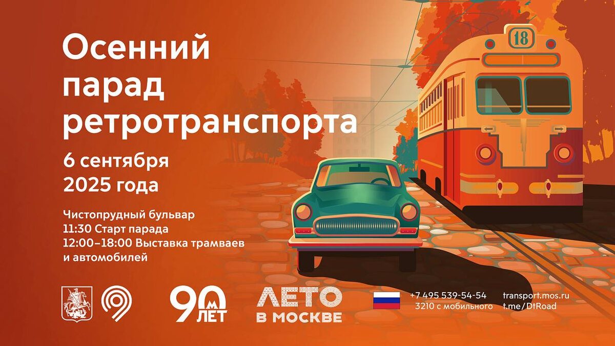 🆓 Осенний парад ретротранспорта пройдет в Москве 🗓️6 сентября Динамическая часть общегородского мероприятия начнется в 11:30 с маршрутом от станции «Новокузнецкая» до станции «Чистые пруды». Кроме того, с 12:00 до 18:00 для посетителей будет организована статичная экспозиция ретротранспорта на Чистопрудном бульваре с перекрытием движения на прилегающих улицах. Подробнее ЗДЕСЬ @Together_with_kids Пост носит информационный характер