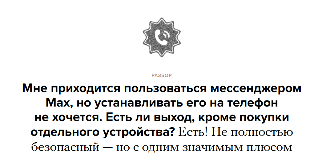 Как бы то ни было, если вам не хочется даже видеть иконку мессенджера у себя на телефоне, а пользоваться им все-таки нужно, есть способ обойти необходимость в установке (помимо покупки отдельного устройства «под Max»)
