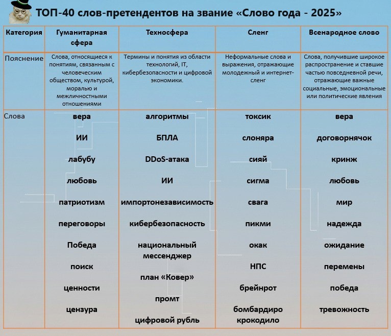 Вчера на ММКЯ огласили список топ-40 слов проекта «Слово года» — претендентов на победу в 2025 году