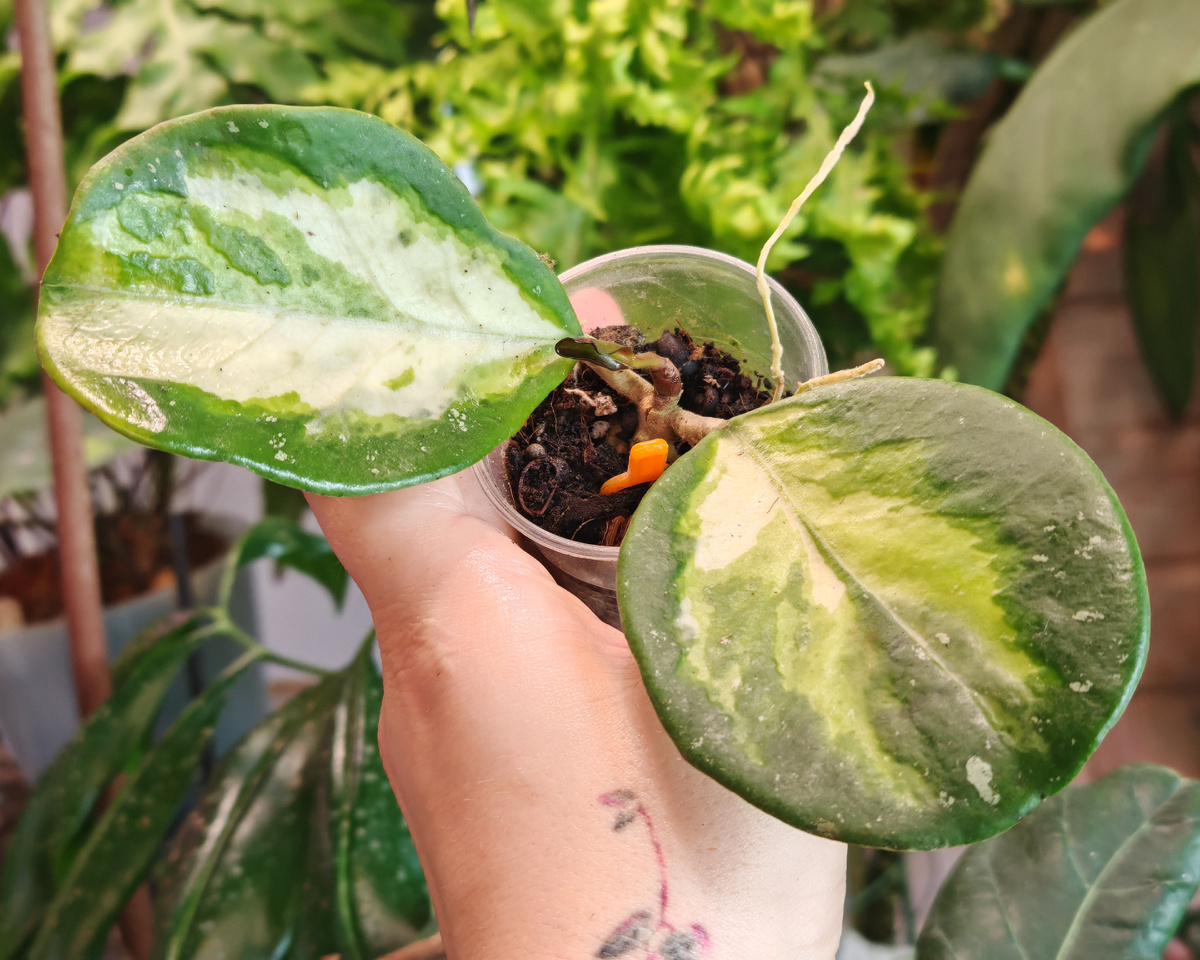 Хойя обовата вариегатная — это невероятно эффектное растение с сочными, округлыми листьями с непредсказуемыми кремово-белыми или зеленовато-желтоватыми разводами и серебристым брызгами внутри листовой пластины. Давайте познакомимся с этой тропической красавицей поближе! Хойя обовата(Hoya obovata) — вид, принадлежащий к семейству Кутровые (Apocynaceae). Её природный ареал — влажные тропические леса Юго-Восточной Азии, особенно Индонезии и Таиланда. В природе она растет как эпифит, используя стволы и ветви деревьев как опору, но не паразитируя на них. Это ключ к пониманию её потребностей: высокая влажность, рассеянный свет и воздухопроницаемый субстрат. Род Хойя был назван в честь Томаса Хоя,известного английского садовника XVIII века, который работал у герцога Нортумберленда и внес большой вклад в ботанику. Вариегатная (пестролистная) форма обоваты — результат естественной мутации или целенаправленной селекции, которая была выделена и закреплена благодаря нестабильности хлорофилла в кл