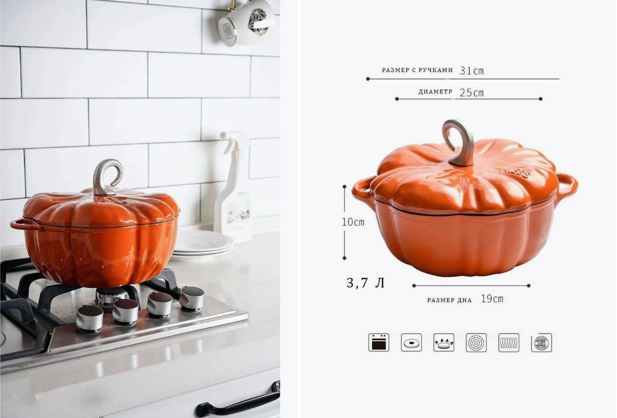 Чугун — это вообще отдельная магия. Он так равномерно распределяет тепло, что еда не пригорает, а становится невероятно нежной и сочной. А ещё это тяжёлое дно и стенки сохраняют тепло, поэтому ваше блюдо останется горячим, пока все не соберутся за столом. Это не просто посуда, а настоящий арт-объект, который добавит тепла и осеннего настроения на вашу кухню. Такая кастрюля превращает обычную готовку в настоящий ритуал.