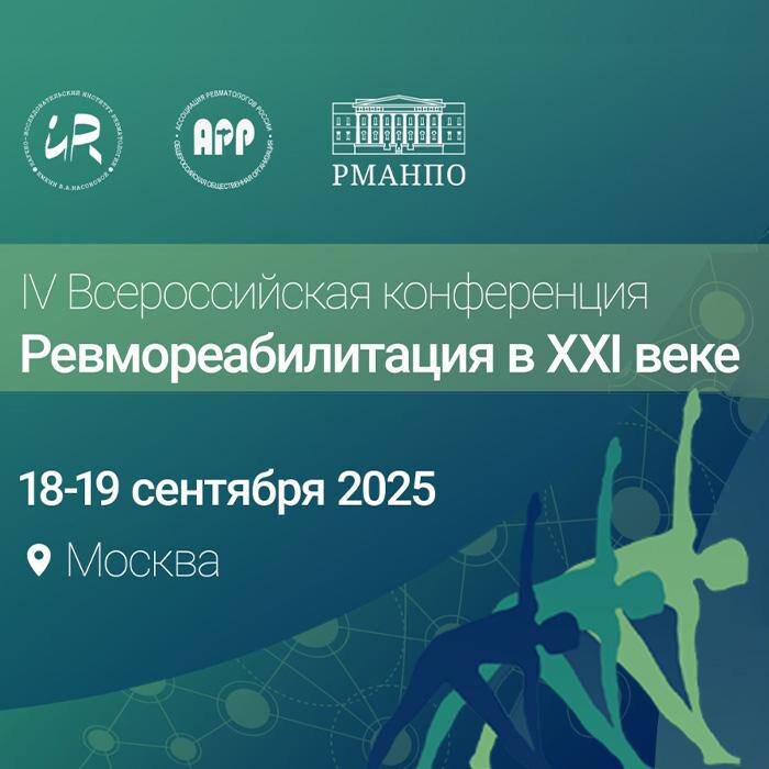 🛐🉑♐️ ПРИГЛАШАЕМ НА IV ВСЕРОССИЙСКУЮ КОНФЕРЕНЦИЮ: «РЕВМОРЕАБИЛИТАЦИЯ В XXI ВЕКЕ» Организатор конференции Федеральное государственное бюджетное научное учреждение «Научно-исследовательский институт ревматологии им. В.А. Насоновой» Соорганизаторы ФГБОУ ДПО «Российская медицинская академия непрерывного профессионального образования» МЗ РФ ФГБУ ФНОЦ МСЭ и Р им.Г.А.Альбрехта Минтруда России ФГБУ «НМИЦ РК» Минздрава России ООО «Ассоциация ревматологов России» НП «Профессиональная Ассоциация Рефлексотерапевтов» 💕💓❤️🔥 Приглашаем всех желающих на тематическое заседание и доклад профессора, д..м.н. Марьяновского А.А. Формат мероприятия: аудиторный Участие бесплатное. Место проведения Москва, ул. Русаковская, дом 24 Отель «Holiday Inn» Сокольники ↩️↩️↩️↩️↩️↩️ РЕГИСТРАЦИЯ 🔗🔗🔗🔗🔗🔗🔗